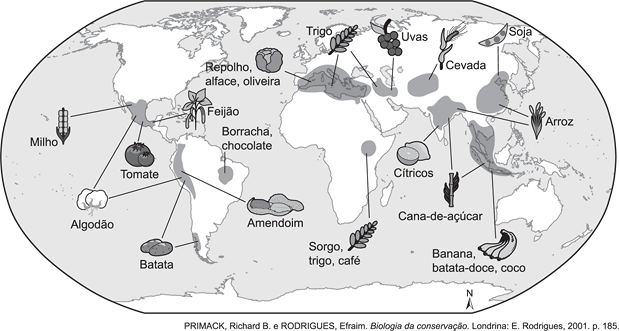 15Observe atentamente o mapa. Ele representa as áreas onde originalmente várias plantas alimentícias, que nos são muito familiares, foram domesticadas.