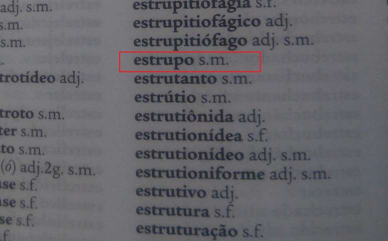 Se você estudou para o Exame Nacional do Ensino Médio (Enem) pelo Volp, tome cuidado. Para a redação, é considerada a norma culta. A palavra "estrupo" não está de acordo com a norma formal da língua, logo, será considerada incorreta na prova nacional. Uma das competências que o candidato deve desenvolver neste teste, segundo o Guia do Participante, é o domínio da modalidade escrita formal da Língua Portuguesa.