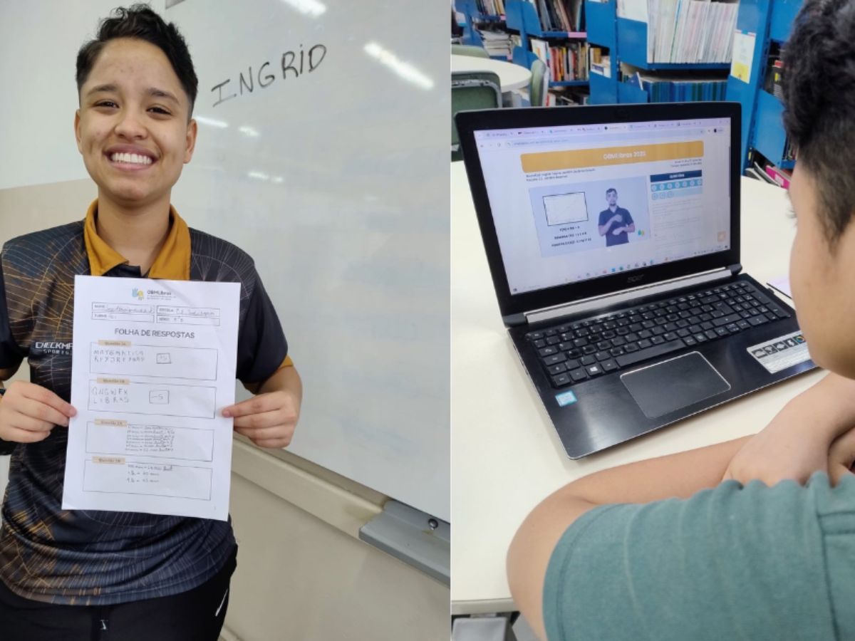 O caminho até a conquista foi um processo de longo prazo, como define a professora. A escola conheceu a OBM Libras em 2022 e, desde 2023, no mesmo ano da chegada de Ingrid à escola, engajou-se na preparação. O suporte veio de um trabalho de equipe que incluiu o professor regente de matemática, João, a professora Ana Claudia, que está à frente da preparação da competição, e, crucialmente, as intérpretes de Libras.