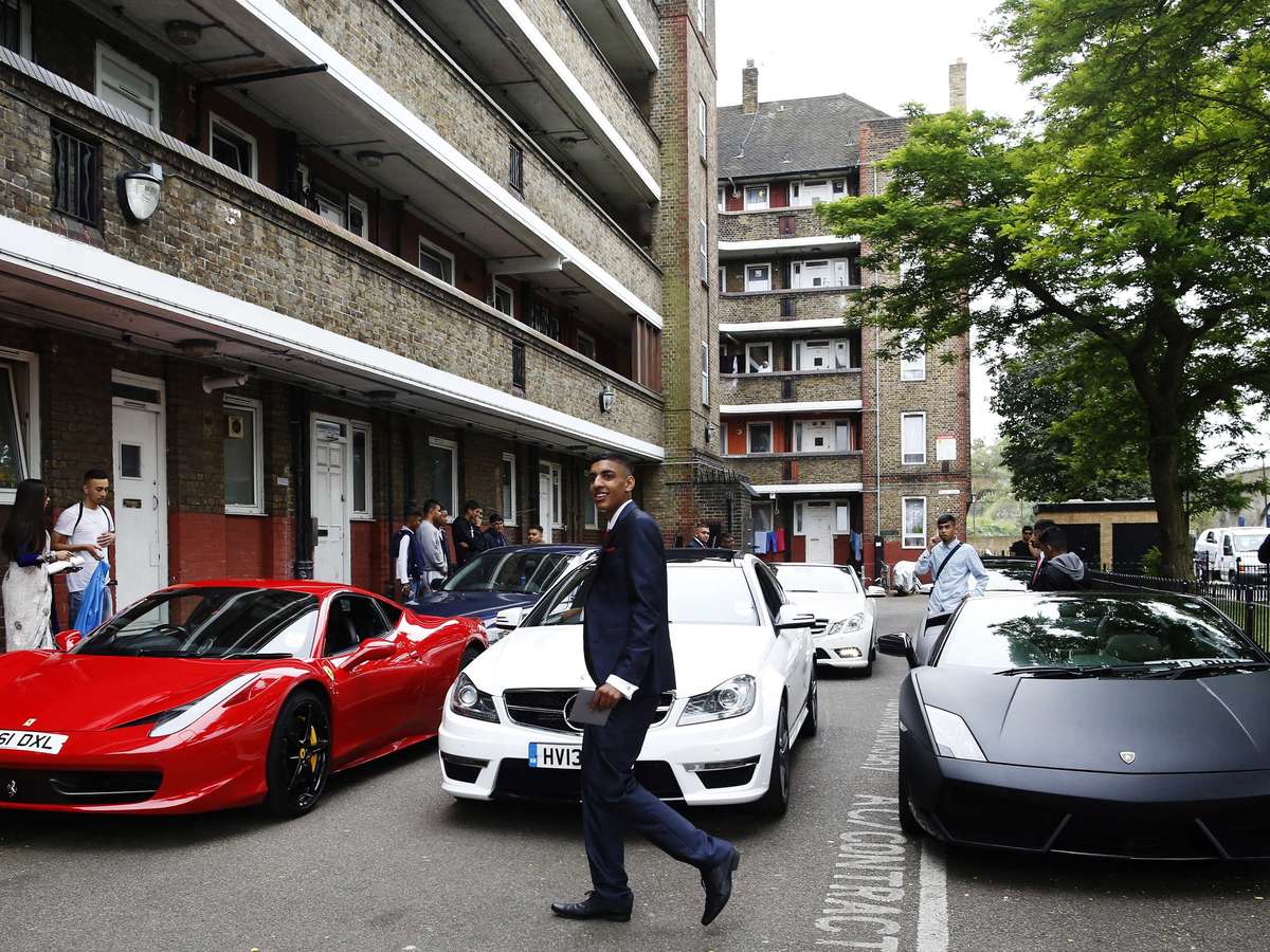 Em um dos bairros mais pobres de Londres, uma tendência tem ganhado força entre adolescentes para celebrar a formatura: jovens estão alugando carros de luxo para exibir aos colegas e à população em desfiles comemorativos. Moradores de Tower Hamlets tentam esquecer por pelo menos um dia os percalços econômicos e não poupam dinheiro para desfilar em carros que podem custar mais do que uma casa na região