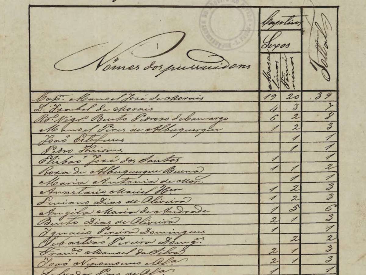 Essa lógica também aparece nos contratos. Em 1866, Francisco Vilela tomou meio bilhão de réis emprestados com uma casa comissária. Como garantia, ofereceu sua fazenda, seu cafezal e 250 pessoas escravizadas. Na prática, isso significava listar, avaliar e vincular pessoas a dívidas.