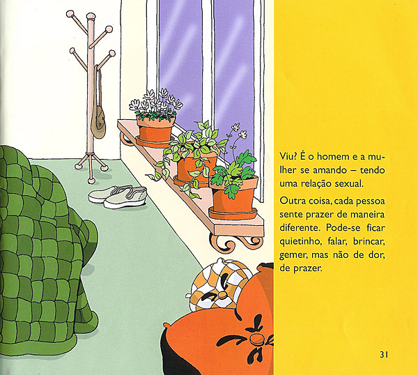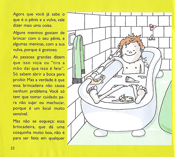As ilustrações que acompanham os textos mostram, por exemplo, meninas e meninos se masturbando. "A verdade é que essa brincadeira não causa nenhum problema", diz o texto. Toda a polêmica está contida no livro Mamãe, como eu nasci?, escrito por Marcos Ribeiro com ilustrações de Bia Salgueiro.