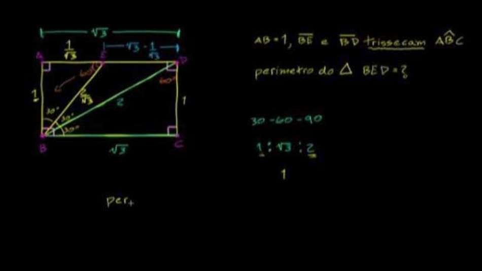 Vídeo sobre resolução de exercícios de aplicação em triângulo retângulo com ângulos de 30°, 60° e 90° e a definição de trissecção de um ângulo. Todo o conteúdo da Khan Academy, com vídeos e exercícios, está disponível gratuitamente em www.khanacademy.org