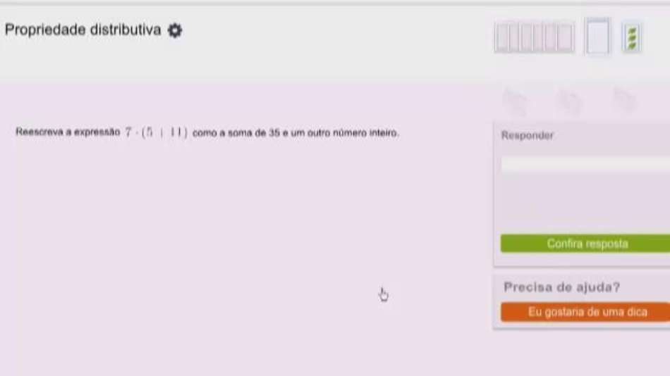 Vídeo de resolução de exercícios sobre a propriedade distributiva da multiplicação em relação à soma.