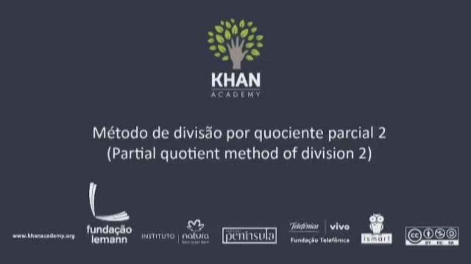 Matemática Método de divisão por quociente parcial 2 Exibir comentários Compartilhar Vídeo sobre divisão pelo método do quociente parcial. Todo o conteúdo da Khan Academy, com vídeos e exercícios, está disponível gratuitamente em www.khanacademy.org Khan Academy Publicidade