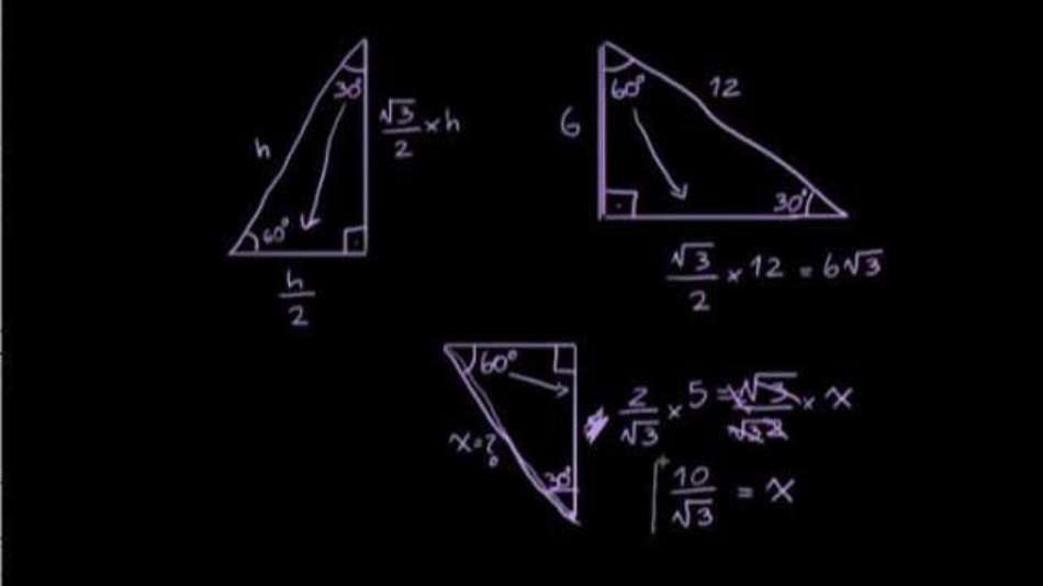 Vídeo sobre triângulos retângulos com ângulos internos de medidas 30, 60 e 90 e resolução de exercícios. Todo o conteúdo da Khan Academy, com vídeos e exercícios, está disponível gratuitamente em www.khanacademy.org
