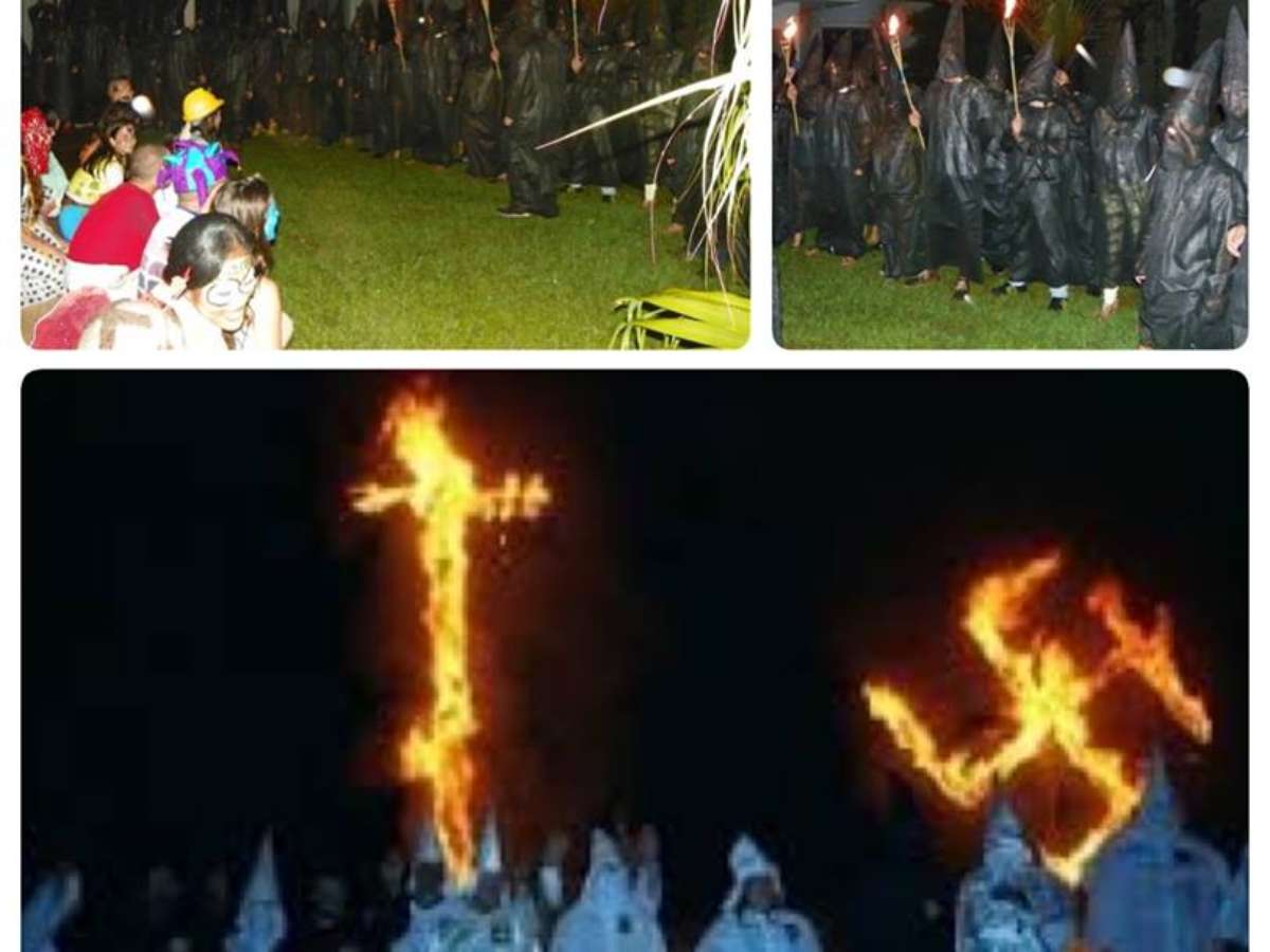 O tema veio à tona após imagens da festa serem divulgadas nas redes sociais. Com capas, gorros e tochas nas mãos, os estudantes vestiam roupas bem similares às da KKK, alterando apenas a cor, para preto.
