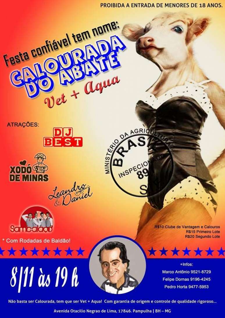 O polêmico cartaz já foi retirado de circulação na instituição de ensino. Uma outra peça publicitária foi confeccionada, e a nova montagem traz um homem fantasiado de vaca. A festa do curso de Veterinária ocorre no próximo sábado, em Belo Horizonte.