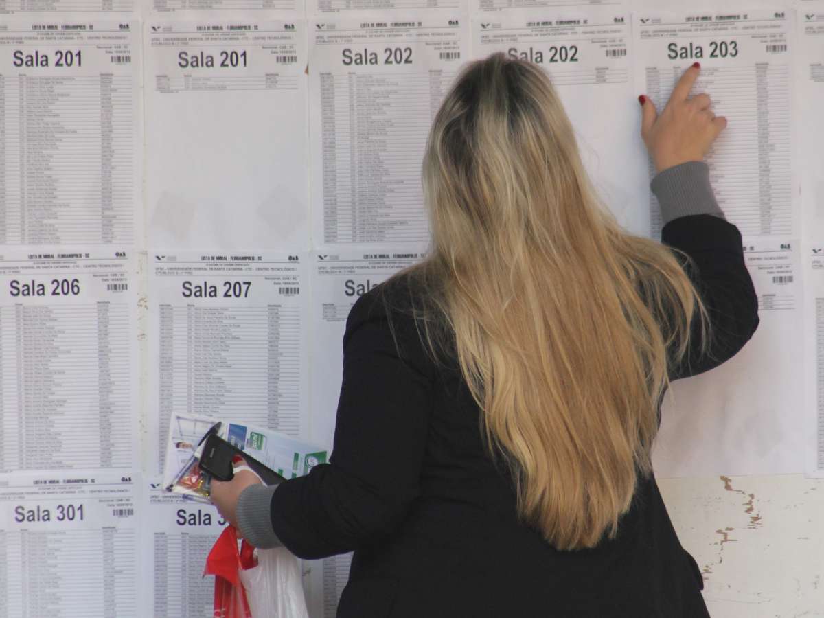 Estudantes procuram a sala na qual irão realizar o exame em Florianópolis