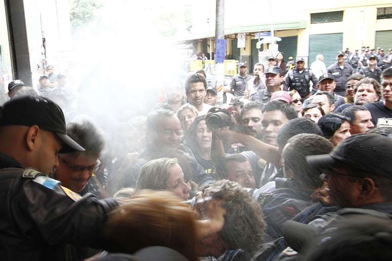 PUBLICIDADE Capa Notícias Educação Enem Vestibular Carreira Concursos Cursos de Excel Curso de ChatGPT Alexandre Max Lia Glaz Fundação Telefônica Vivo Oferecimento PM usa spray de pimenta em tumulto com professores na Câmara do Rio Compartilhar A polícia usou spray de pimenta para reprimir um grupo de manifestantes que tentou bloquear a ação da PM no local Foto: Ale Silva / Futura Press A polícia usou spray de pimenta para reprimir um grupo de manifestantes que tentou bloquear a ação da PM no local Foto: Ale Silva / Futura Press Manifestantes atearam fogo em lixeira durante tumulto Foto: Mauro Pimentel / Terra Ônibus foram usados para bloquear via no centro do Rio durante protesto Foto: Mauro Pimentel / Terra Os professores da rede municipal protestam junto à Câmara de Vereadores Foto: Reynaldo Vasconcelos / Futura Press Com a via interditada, policiais militares permitem apenas a passagem de funcionários da Câmara pelo bloqueio Foto: José Carlos Pereira de Carvalho / vc repórter Quem trabalha nos escritórios da rua também está impedido de passar e protesta pedindo garantia do direito de ir e vir Foto: José Carlos Pereira de Carvalho / vc repórter Manifestante é detido durante protesto Foto: Mauro Pimentel / Terra Bomba teria atingido viatura da Polícia Militar Foto: Mauro Pimentel / Terra Manifestantes protestam em frente a policiais Foto: Mauro Pimentel / Terra Manifestantes xingam o prefeito do Rio, Eduardo Paes, quando a imagem deste aparece em uma TV Foto: André Naddeo / Terra Vidro de agência bancária é quebrado Foto: André Naddeo / Terra Compartilhar Publicidade Compartilhar TAGS Educação Notícias Publicidade