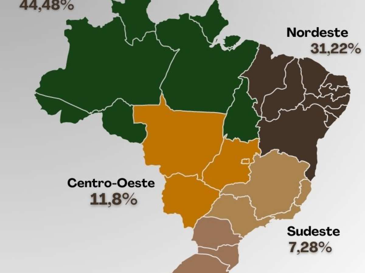 Veja a distribuição da população indígena nas regiões brasileiras, segundo o Censo Demográfico 2022 (IBGE):