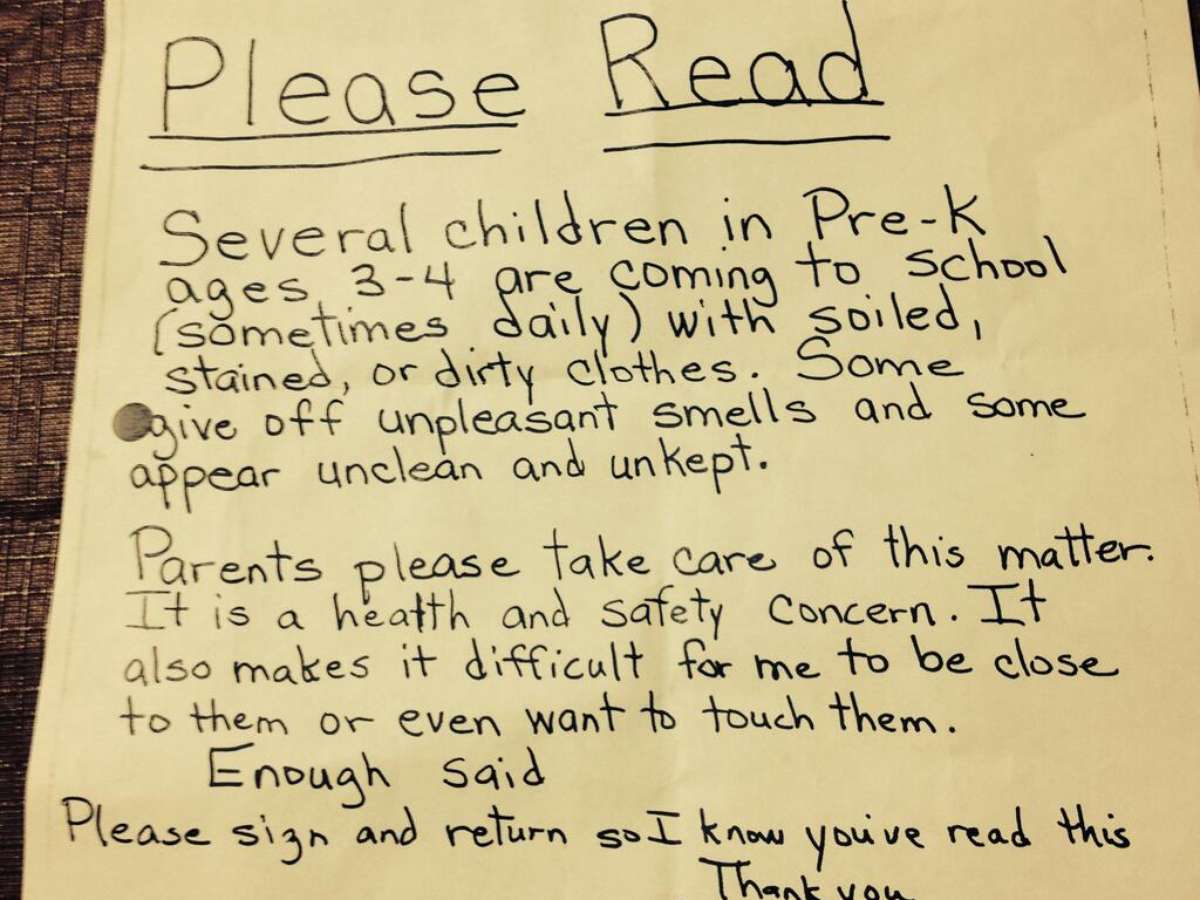 "Isso não está certo, não é para isso que escolhemos essa escola", afirmou Kimberly Wells, mãe de uma das crianças, à rede de televisão local KTNV-TV. "Ela poderia ter ligado para um de nós, poderia ter marcado uma reunião na escola", afirmou. As crianças, com idades entre 3 e 4 anos, estariam frequentando as aulas com "cheiros desagradáveis e roupas malcuidadas, conforme o bilhete atribuído à professora. O Huffington Post afirma que tentou contato com a instituição de ensino, porém não obteve resposta.
