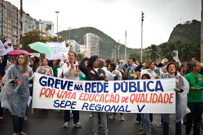 Professores participam de protesto no Rio de Janeiro neste domingo. A manifestação, intitulada "Contra a Repressão, passeata da educação", foi iniciou no bairro do Leme e termino no Forte de Copacabana