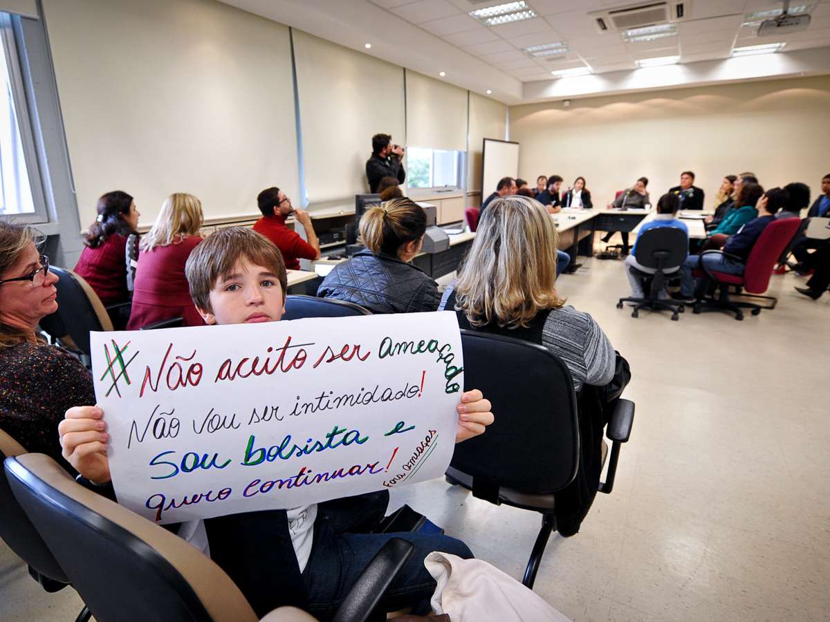 Em reunião com vereadores, pais disseram que os filhos foram ameaçados de perder bolsa na escola após defesa de professor