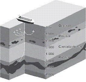 O termo pré-sal refere-se a um conjunto de rochas localizadas nas porções marinhas de grande parte do litoral brasileiro, com potencial para a geração e o acúmulo de petróleo. Convencionou-se chamar de pré-sal porque forma um intervalo de rochas que se estende por baixo de uma extensa camada de sal. (...) a distância entre a superfície do mar e os reservatórios de petróleo abaixo da camada de sal pode chegar a 7 mil metros. (...) no interior da camada, o petróleo e o gás ficam armazenados nos poros das rochas, sob altíssima pressão.
