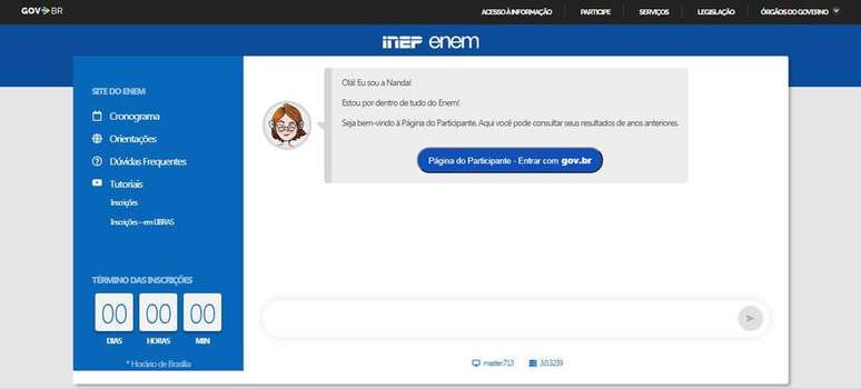 Os candidatos pode acessar a página do participante com o login gov.br, um acesso único a diversos serviços digitais do Governo Federal. Em caso de dúvidas ou dificuldades, o MEC disponibilizou um telefone para consultas: 0800 616161. Procurado, o Inep ainda não divulgou uma previsão de estabilização para o sistema.