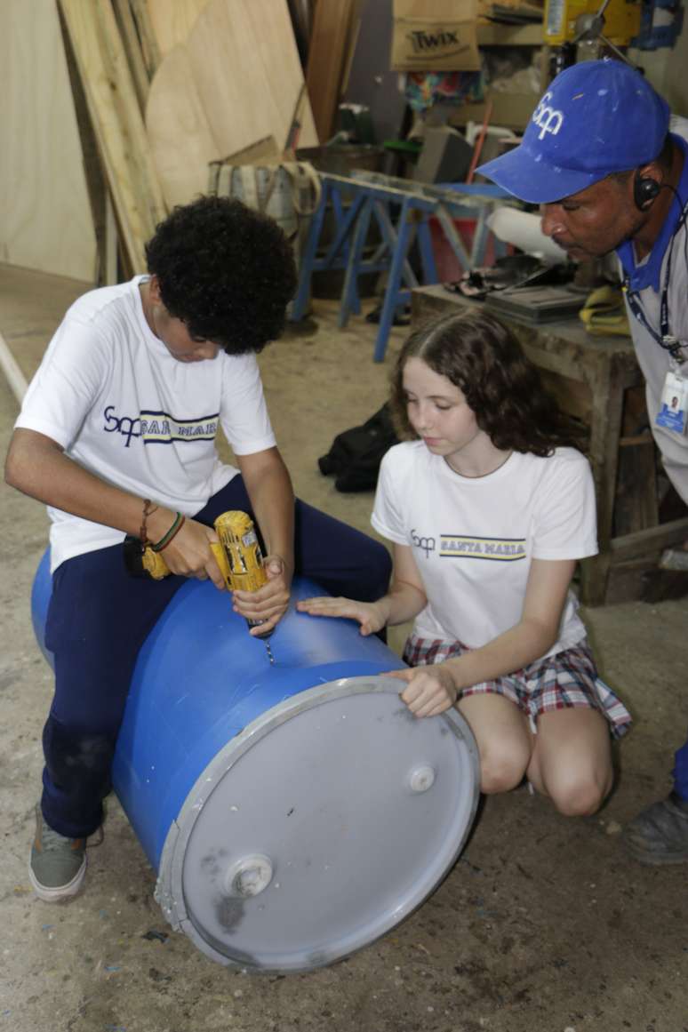 No Colégio Santa Maria, a onda sustentável começou antes mesmo da crise hídrica. Em um projeto idealizado pela professora de ciências do oitavo ano, Denise Garcia Carneiro, alunos de 13 anos confeccionam uma minicisterna durante o ano. O reservatório tem capacidade para armazenar 200 litros de água da chuva e é feito com matéria-prima de baixo custo ou mesmo reaproveitada, como canos de PVC e tonéis de plástico.