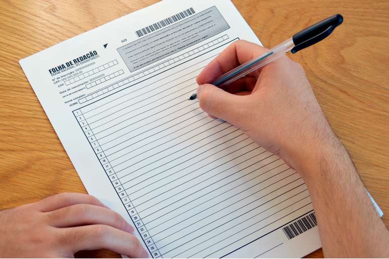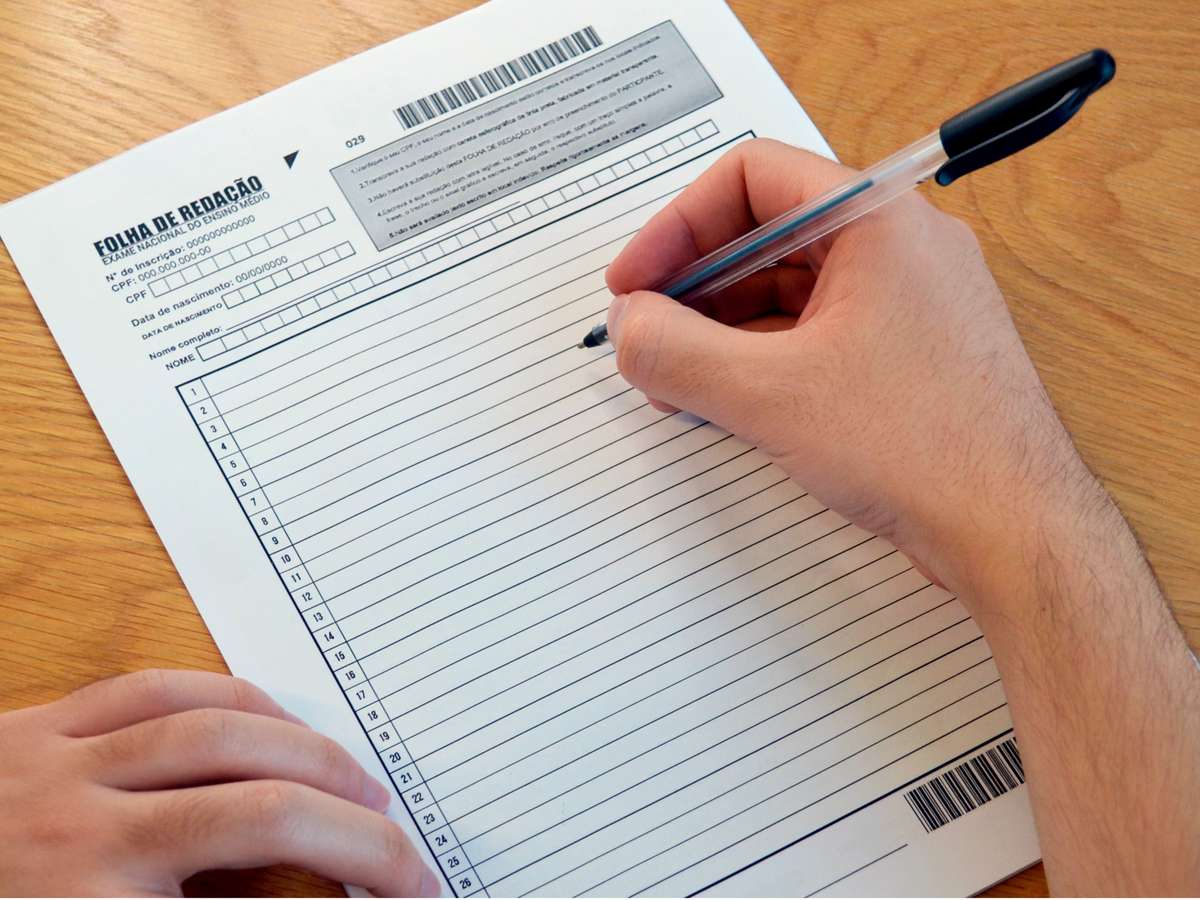 A redação é anulada em casos de fuga do tema, letra ilegível, texto com menos de sete linhas ou identificação da autoria da redação em qualquer ponto da folha.