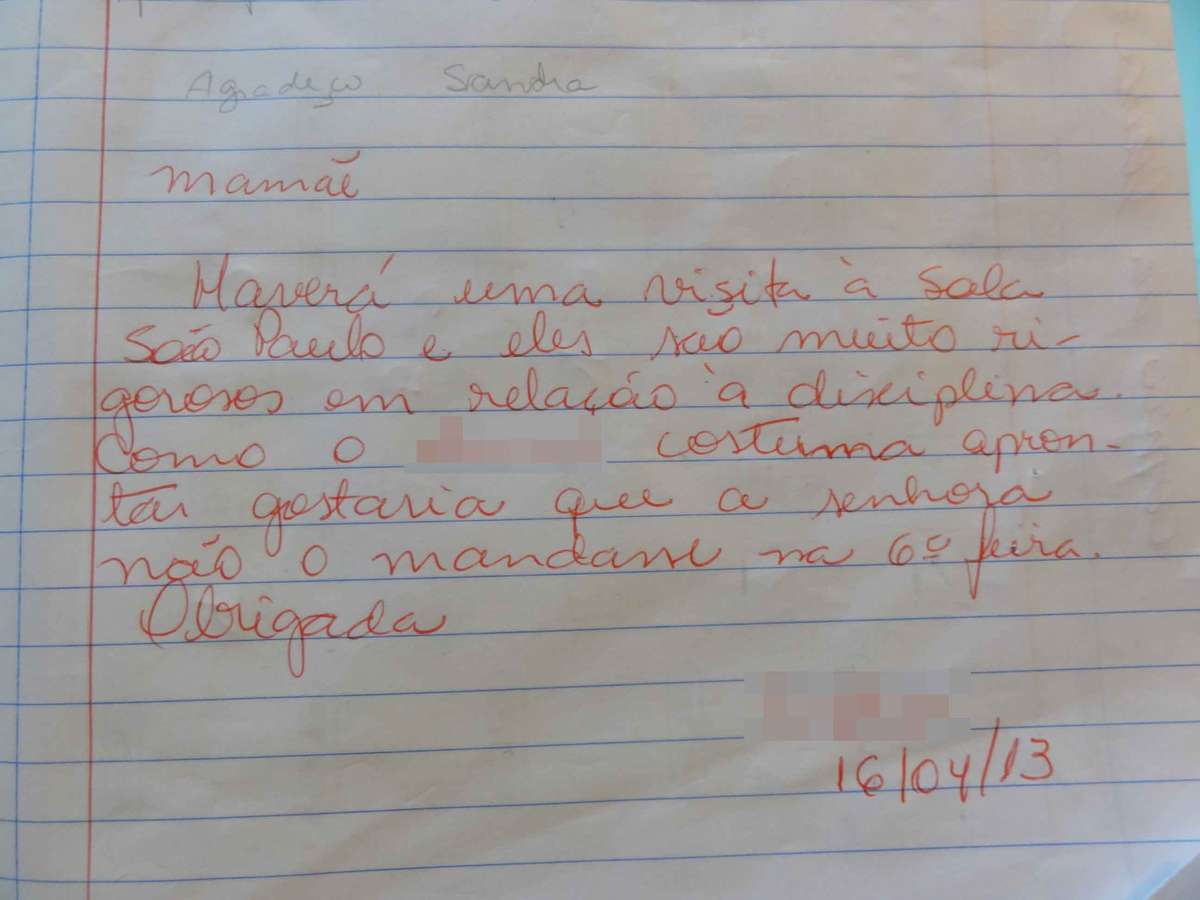 vc repórter: em bilhete, professora pede que mãe proíba filho de ir a passeio