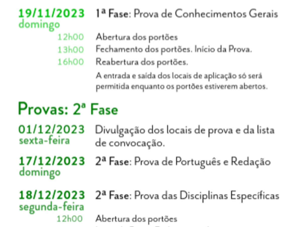 17 e 18 de dezembro: Provas da 2ª fase