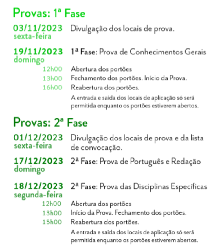 Calendário completo da Fuvest 2024;