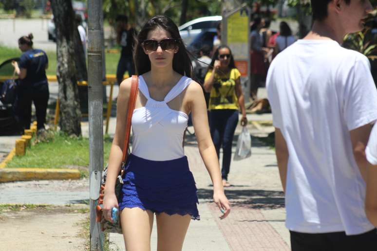 Uma jovem foi flagrada pelo Terra correndo descalça pelo campus para tentar chegar a tempo do exame