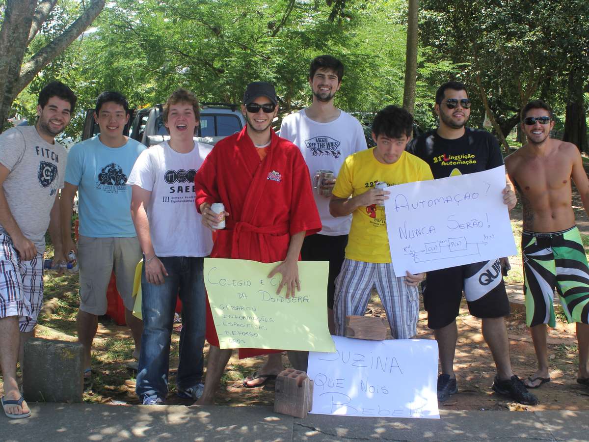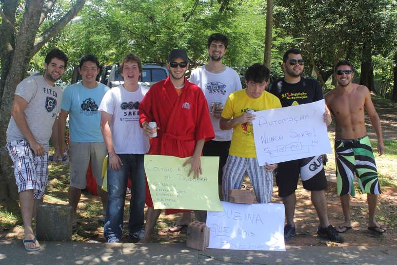 A contribuição era livre e os recursos com os gabaritos, que nada mais eram do que um bottom com o nome do curso, eram usados nos churrasco e na festa organizada no meio da calçada. Com um roupão vermelho, o estudante Guilherme Schowantz, do sétimo período de automação, destacou que o ato não seria uma forma de “tocar o terror” entre os calouros, e sim uma forma de interação. “Estamos sem fazer nada e viemos mostrar no que eles vão se transformar ao entrar na universidade”, brincou.