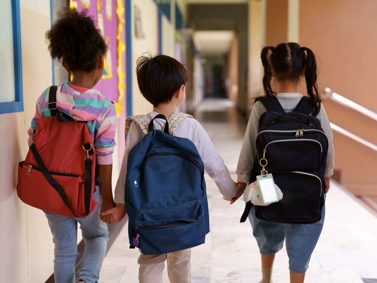 O peso da mochila ideal deve ser 10% do peso da criança e não passar de 1,5kg, sendo de alças largas e adaptadas ao corpo. As de rodinhas também são boas alternativas.