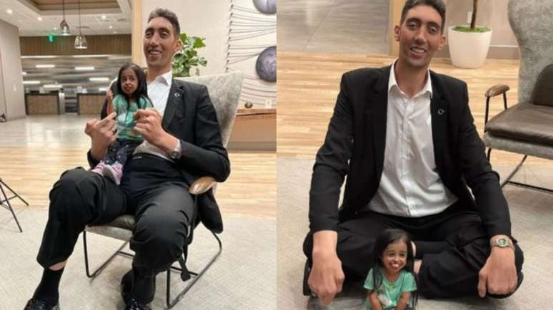 O tamanho avantajado do agricultor Sultan Kösen se dá em razão de um tumor; já a atriz indiana apresenta um quadro de acondroplasia, uma das formas de nanismo