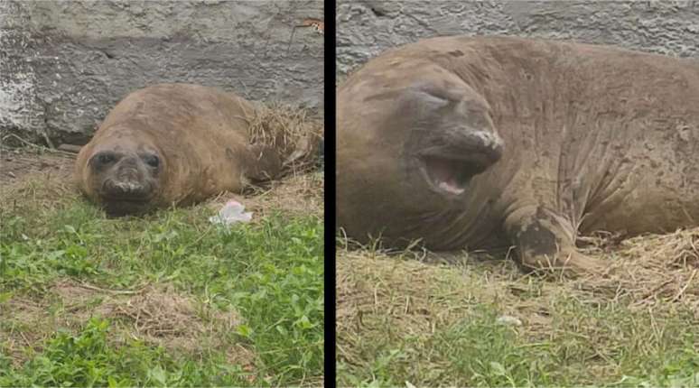 Elefante-marinho descansa em terreno baldio em Capão da Canoa