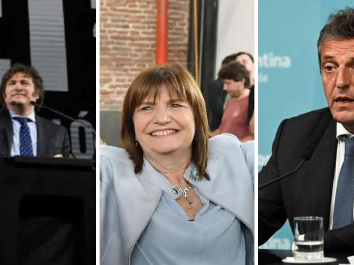 Bullrich, Milei e Massa são os três primeiros colocados nas pesquisas de intenção de voto.