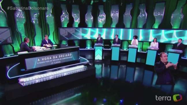 O presidente e candidato à reeleição Jair Bolsonaro (PL) esteve presente na sabatina realizada por Terra, Estadão/Rádio Eldorado,SBT, CNN, Veja e Rádio Nova Brasil nesta sexta-feira, 21. Luiz Inácio Lula da Silva (PT) também foi convidado para o que seria um debate entre os presidenciáveis, mas recusou alegando incompatibilidade com a agenda de campanha.