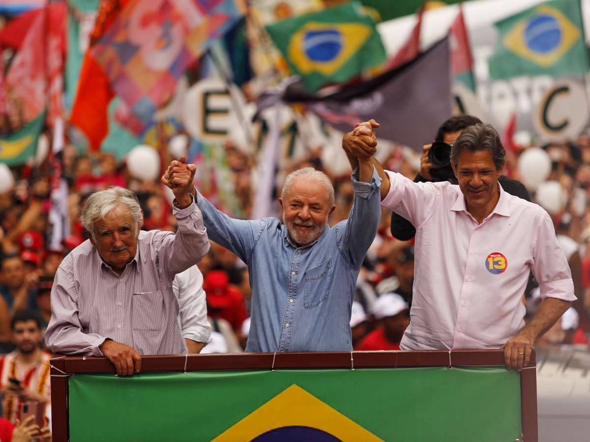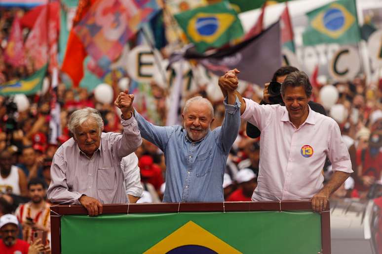 Petista encerrou campanha com ato na Avenida Paulista ao lado de ex-presidente do Uruguai
