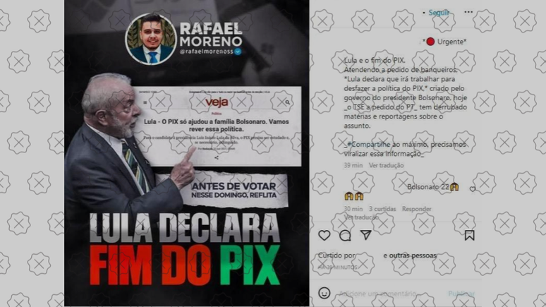 As postagens enganosas reuniam ao menos 5.000 curtidas no Instagram na tarde deste sábado (29).