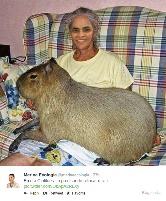Ativa nas redes sociais desde os tempos de Partido Verde (PV), a candidata à Presidência Marina Silva, hoje no PSB, dificilmente desabafaria o tédio em público anunciando estar em uma “tarde maravilhosa pra lavar roupa no rio”. Muito menos adiantaria que os planos do dia seguinte se resumiriam a “fazer dreads”, ou que “as pedras no caminho” devem ser usadas, na verdade, “pra derrubar manga da árvore”.