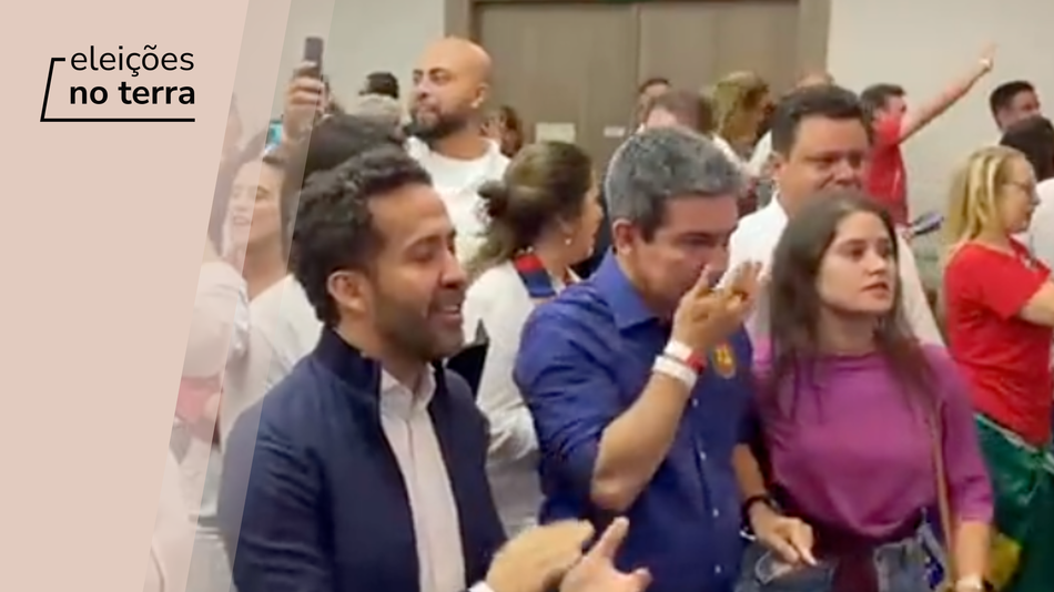 Aliados políticos de Lula (PT) comemoram virada de Lula na apuração dos votos em hotel em São Paulo. O vice do petista, Geraldo Alckmin, também aparece nas imagens.