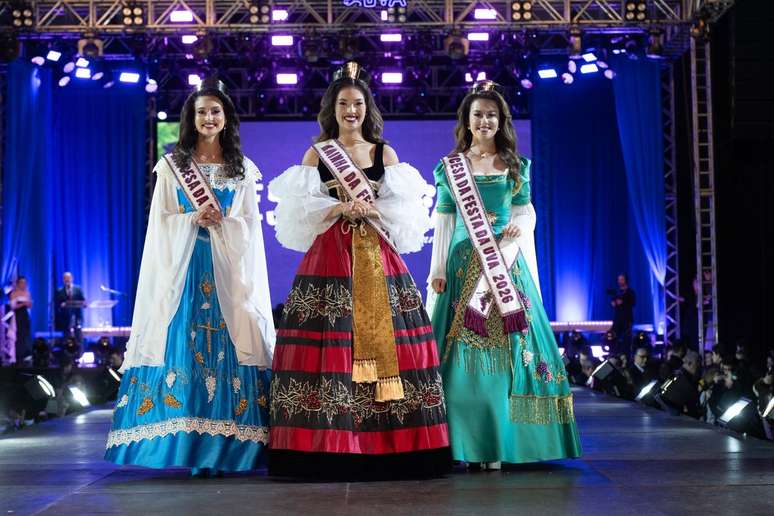 Na noite de sábado, dia 23 de agosto, foi escolhida a corte que irá divulgar e representar a 35ª Festa Nacional da Uva pelos próximos dois anos. Elisa dos Santos Pereira D'Mutti, do SER Caxias e Vinhedos Papeis, foi eleita a Rainha da edição de 2026 da Festa, enquanto Júlia Dalegrave Scopel, do Recreio da Juventude, e Letícia Comin da Silva, da CDL Caxias, Sindigêneros Caxias e Sindilojas Caxias, são as Princesas que a acompanharão nessa jornada. O evento, realizado no Ginásio do SESI, reuniu aproximadamente 2.500 pessoas, entre autoridades, convidados, imprensa, familiares e participantes das torcidas.
