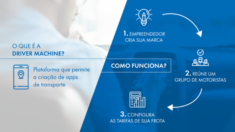 Com o objetivo de democratizar essa tecnologia a empresa carioca Machine desenvolveu o produto Driver Machine, que permite a criação de aplicativos de transporte em todas as cidades do país. "Percebemos que muitos motoristas já não lucravam como antes, foi quando vimos a possibilidade de criar aplicativos para que eles se tornassem os donos dos apps com nome, marca e preço que escolherem", diz Bruno Muniz, sócio-executivo da Machine.
