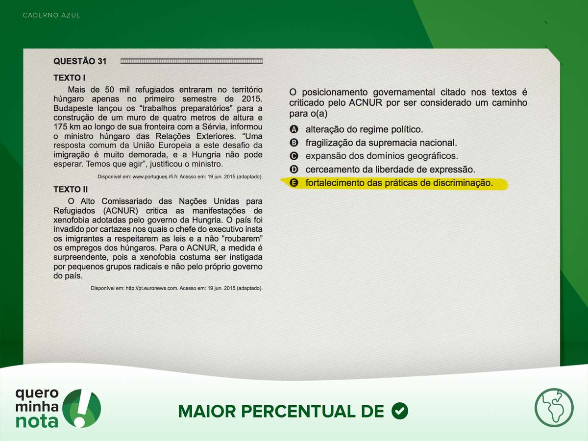 (questões 100, 113 e 129 do caderno AZUL do Enem 2016)