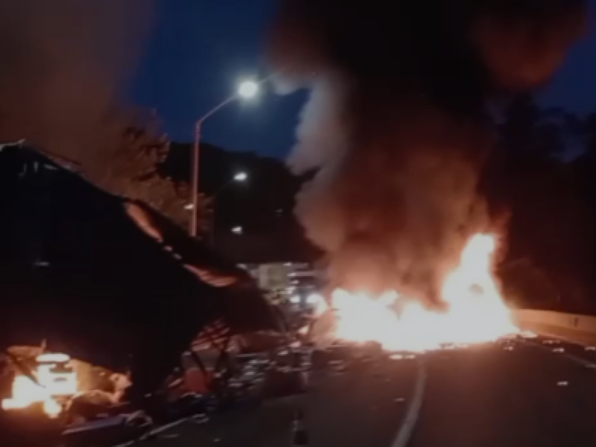 A corporação explicou que o caminhoneiro, ao se deparar com veículos parados na pista, tentou desviar pela área interditada, retornando em seguida à faixa liberada, quando atingiu a van, que foi arremessada contra a mureta de proteção. Logo depois, o caminhão colidiu contra a carreta à frente. Com o impacto, a cabine se desprendeu do chassi e ficou presa na traseira do outro veículo, enquanto o baú foi arremessado para a lateral da pista.