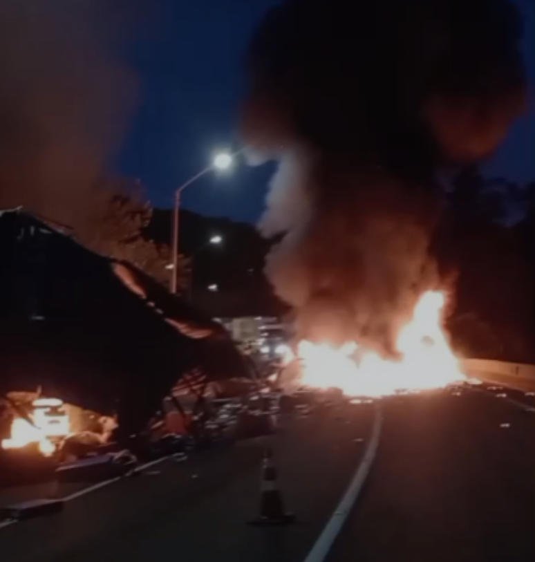 Com o impacto da colisão, uma carreta tombou e a van acabou pegando fogo. O caminhoneiro que conduzia o caminhão-baú morreu no local. A PRF informou que a rodovia estava em obras no momento do acidente, com apenas a faixa esquerda liberada para o tráfego, o que causava lentidão no trecho.