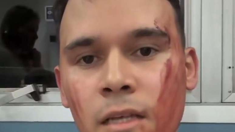 Em um vídeo publicado nas redes sociais, ele surgiu ensanguentado, além de mostrar os ferimentos que seu irmão sofreu na cabeça, que necessitou tomar vários pontos, e contou que o pai fraturou o crânio e está na UTI.