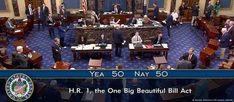 No Senado, o projeto só havia sido foi aprovado com o voto de desempate do vice-presidente, J.D. Vance. "O grande projeto de lei não tão bonito foi aprovado", ironizou Rand Paul, um dos três senadores republicanos que se juntaram aos democratas e votaram contra a medida.