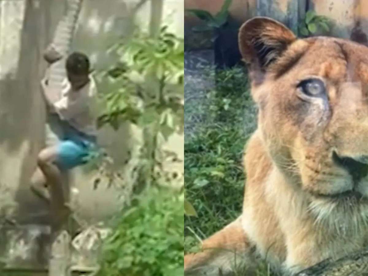 Visitantes do parque registraram a cena em vídeos. As gravações mostram o homem subindo por uma estrutura lateral da jaula e, em seguida, utilizando a árvore para entrar no local. Logo após ingressar no espaço, ele foi atacado pela leoa.