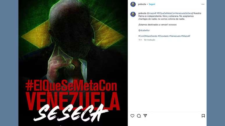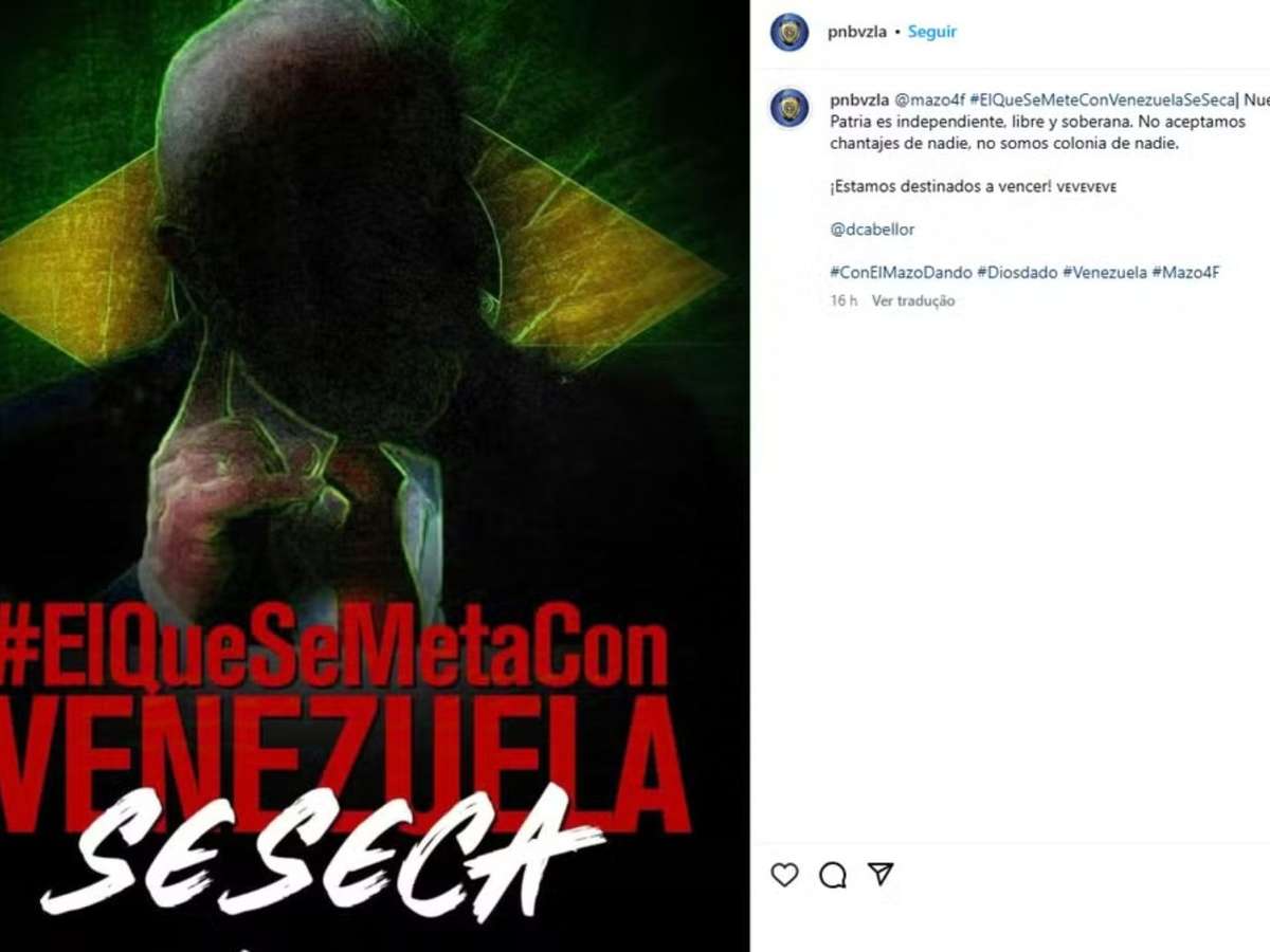 Na quinta-feira, o perfil oficial da Polícia Nacional Bolivariana publicou uma montagem com uma ameaça ao presidente Lula, acompanhada de uma imagem borrada do líder brasileiro diante da bandeira nacional. A frase "Quem se mete com a Venezuela se dá mal" foi incluída na postagem, em alusão às recentes críticas feitas pelo governo Maduro ao Brasil após o veto à entrada da Venezuela no bloco dos Brics.