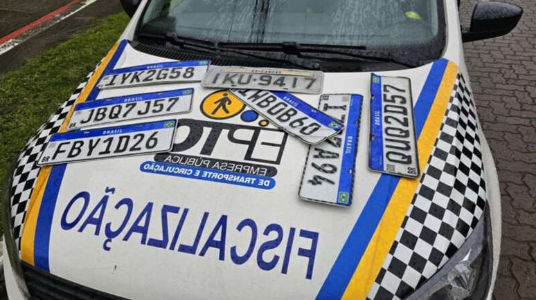 Os agentes de trânsito recolheram algumas e, para auxiliar a população, guardaram as peças na sede da empresa, onde estão à disposição dos seus proprietários. As placas encontradas também podem ser entregues pelos cidadãos aos agentes de fiscalização de trânsito ou na sede da empresa.