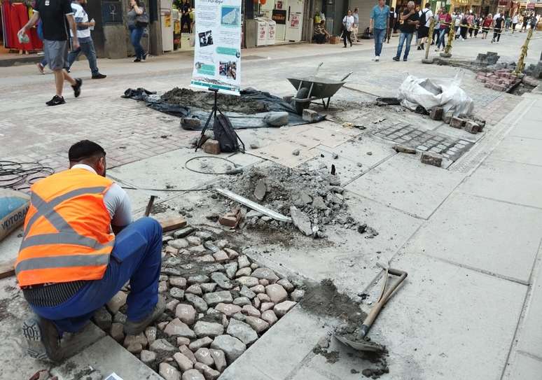 Escavações revelam calçamento do início do século XX no Centro Histórico de Porto Alegre