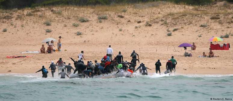 Cinquenta mil africanos estão no Marrocos prontos para partir rumo ao território espanhol, afirma jornal. Com bloqueio de rotas pelos Bálcãs e Itália, país ibérico é o mais visado por migrantes com destino à Europa.Uma nova onda migratória ameaça a Espanha. Com base em informações da polícia, o jornal El Mundo noticiou nesta sexta-feira (27/07) que 50 mil africanos se encontram no Marrocos, prontos para atravessar de barco o Estreito de Gibraltar, a fim de chegar à Espanha.
