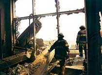 Bombeiros revistam os escombros no dia seguinte aos atentados