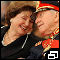 10/03/98. Pinochet e sua esposa, Lucía Hiriart, durante a ceremônia na qual Pinochet entregou o cargo de Comandante em Chefe do Exército |